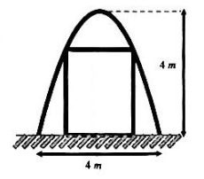 Khoảng cách từ điểm cao nhất của cửa đến mặt đất là 4 mét, khoảng cách giữa hai chân cửa là 4 mét nên parabol đi qua điểm
