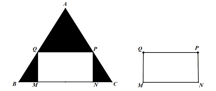 \(20(cm)\). Người ta cắt ở ba góc của tấm nhôm đó ba tam giác như hình vẽ dưới đây để được hình chữ nhật