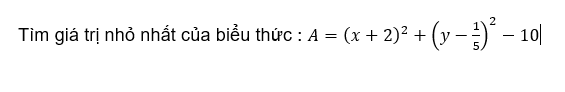 Tìm giá trị nhỏ nhất của biểu thức A = (x + 2)² + (y - 1/5)² - 10