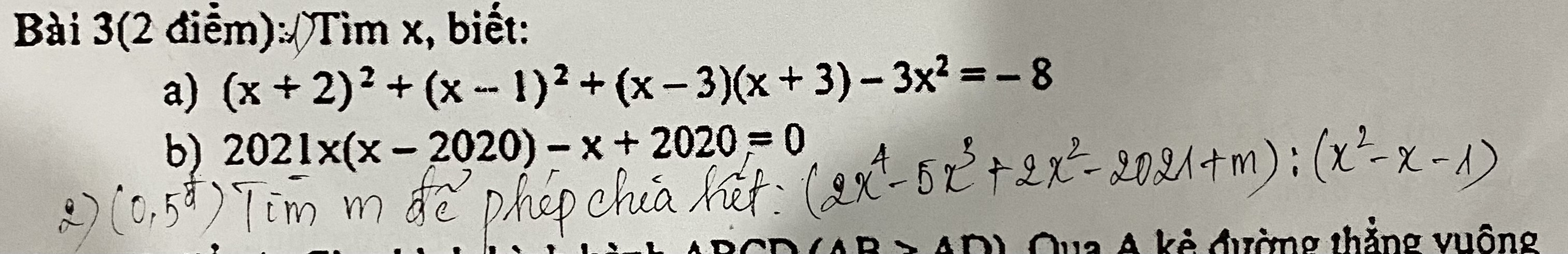 (2 x mũ 4 - 5x mũ 3 + 2x mũ 2 - 2021 +m) : (x mũ 2 - x - 1)