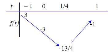 \(f(t) = 4t^{2} - 2t - 3;t \in \lbrack