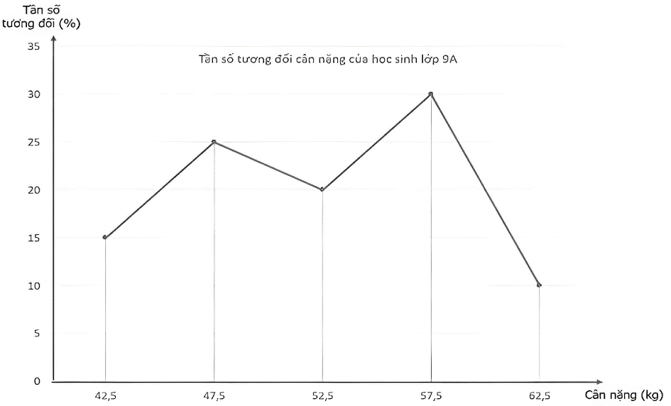 Biểu đồ tần số tương đối ghép nhóm dạng đoạn thẳng biểu Diễn số liệu đã cho: