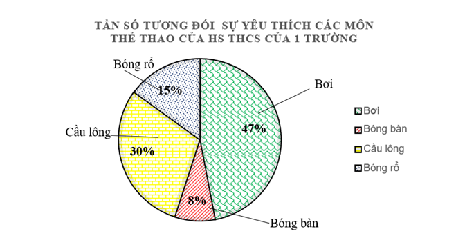 Bài tập 2. Biểu đồ hình quạt tròn dưới đây biểu diễn tần số tương đối của các môn thể thao được yêu thích của học sinh THCS của