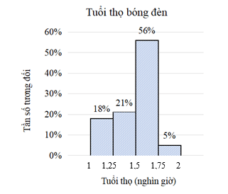 Bài tập 3. Cho biểu đồ tần số tương đối biểu thị tuổi thọ của bóng đèn tính theo đơn vị nghìn giờ.