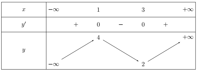 \(\mathbb{R}\) và có bảng biến thiên như hình vẽ dưới đây.
