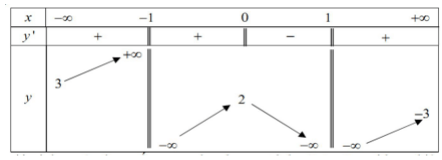 - 1;1 \right\}\), liên tục trên từng khoảng xác định và có bảng biên thiên sau: