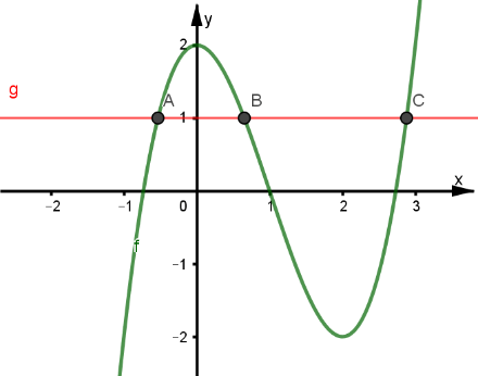 \(3\) điểm phân biệt trong đó có hai điểm có hoành độ dương nên phương trình