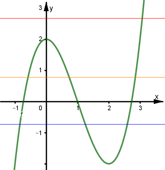 \(y = f(x)\) có đồ thị như hình vẽ bên. Số nghiệm của phương trình