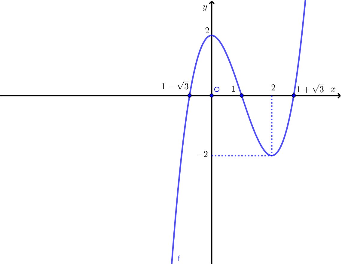 \(t = 1 - \sqrt{3}\). Quan sát đồ thị hàm số