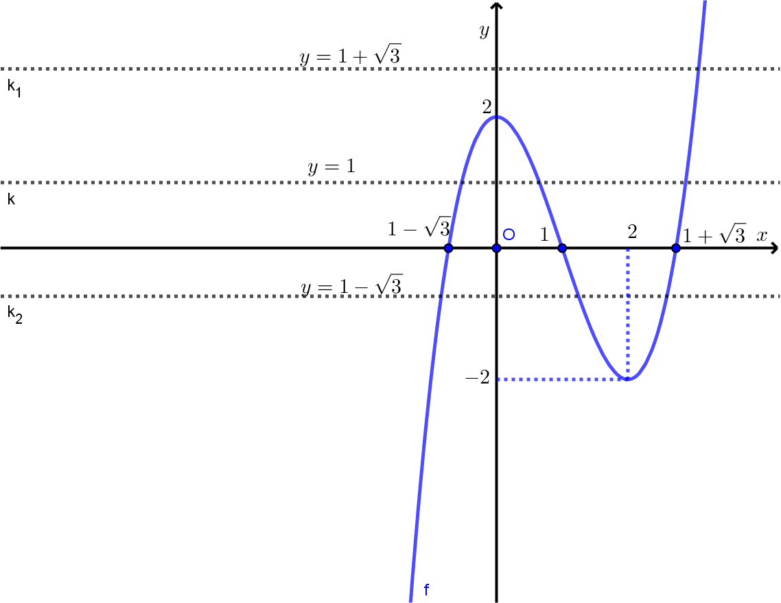 \(y = 1 + \sqrt{3}\) cắt đồ thị hàm số