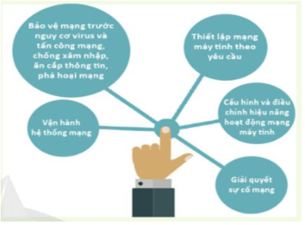 - Quản lí thiết bị mạng, vận hành mạng, thiết lập mạng theo yêu cầu công việc. - Bảo vệ mạng trước các nguy cơ bị tấn công, truy cập mạng bất hợp pháp. - Khắc phục sự cố mạng. |