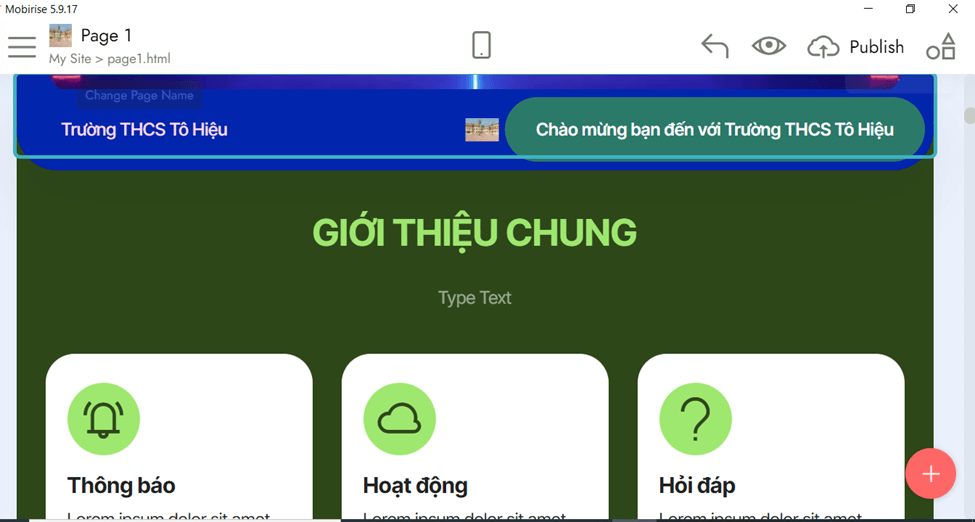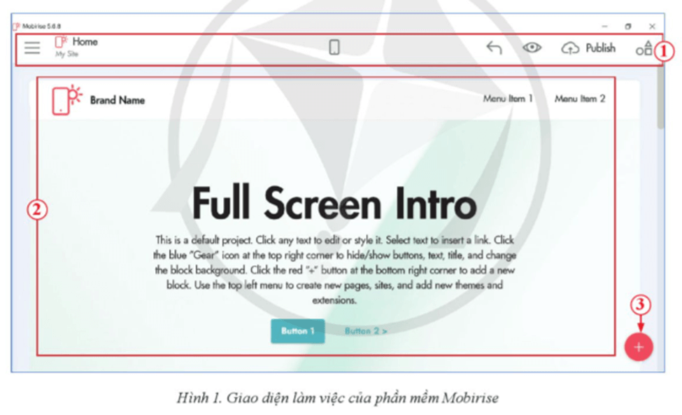 Hoạt động 2 trang 125 Tin học 12: Hãy khám phá giao diện làm việc của phần mềm Mobirise và cho biết cách phần mềm này cung cấp các chức năng cơ bản để tạo website.