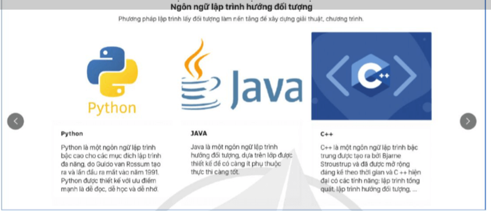 Vận dụng 3 trang 151 Tin học 12: Em hãy tạo nội dung cho trang web được thể hiện dưới dạng thanh trượt theo mẫu như ở Hình 9.