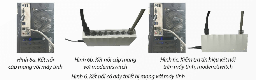 2 Một đầu RJ45 nối vào vỉ mạng của máy tính (Hình 6a), đầu còn lại nối vào modem/switch (Hình 6b).