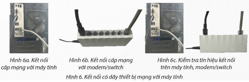 2. Một đầu RJ45 nối vào vỉ mạng của máy tính (Hình 6a), đầu còn lại nối vào modem/switch (Hình 6b).