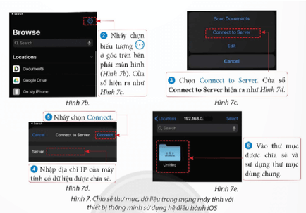 Thực hành trang 37 Tin học 12: Nhiệm vụ 4. Sử dụng tệp, thư mục được chia sẻ cho các máy tính trong cùng một mạng máy tính trên thiết bị thông minh chạy hệ điều hành iOS