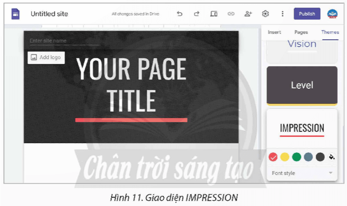 2. Nháy chọn thẻ Themes, chọn mẫu giao diện “IMPRESSION” cho trang web. Kết quả như Hình 11.