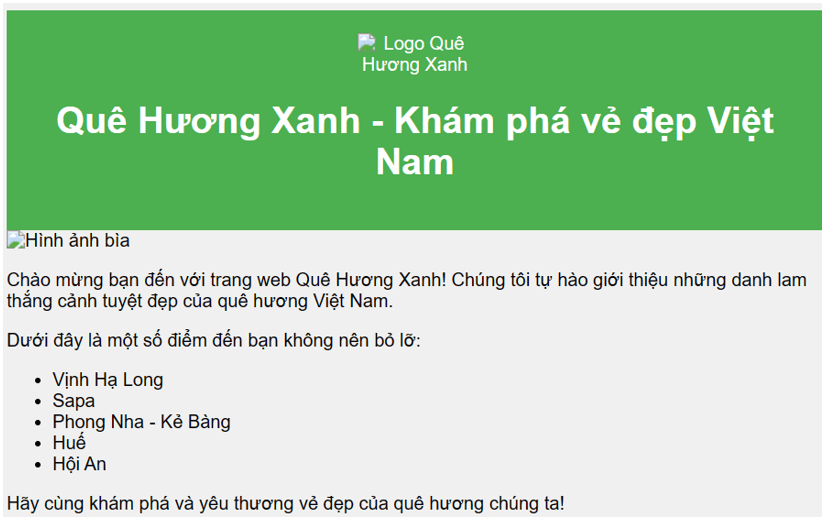 + Thêm chân trang với thông tin về trang web ("Hình 1. Giao diện trang web").