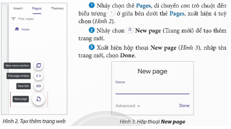 Hoạt động 1 trang 59 Tin học 12: Trong google sites, để tạo trang mới em thực hiện như thế nào?