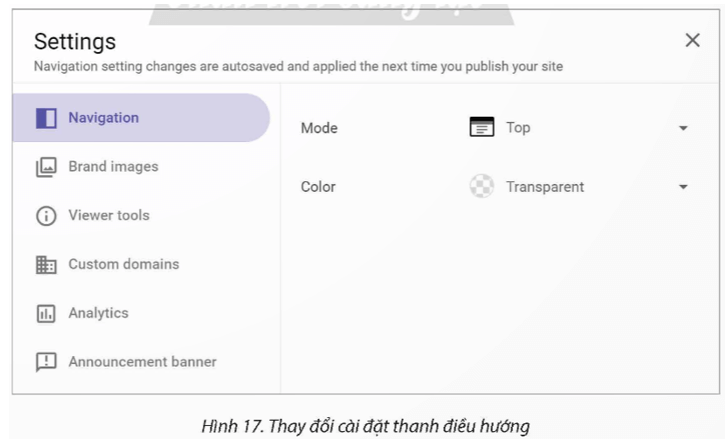 Hoạt động 2 trang 59 Tin học 12: Trong Google Sites, thanh điều hướng được dùng để làm gì?