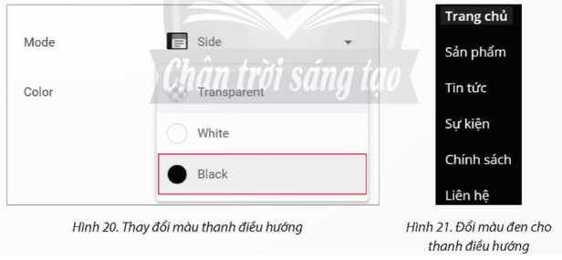 4. Chọn một trong các chế độ xem trước để xem kết quả thiết kế. Kết quả thanh điều hướng sau khi đổi màu đen (Hình 21).