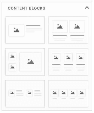Công cụ Content Blocks cung cấp 6 mẫu thiết kế có sẵn như hình dưới.