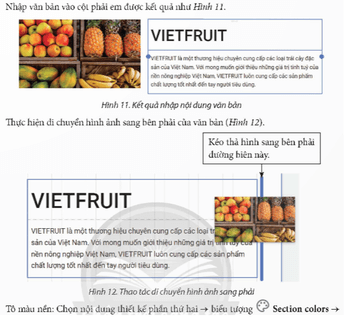 Tô màu nền Style 1 cho bản sao, thay đổi nội dung, thay thế hình ảnh, di chuyển hình ảnh sang trái, em có kết quả như Hình 14.