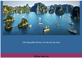 Vận dụng trang 75 Tin học 12: Với trang web chủ đề danh lam thắng cảnh ở địa phương em, hãy thiết kế phần nội dung cho trang chủ. Trang thiết kế gồm các yêu cầu: Có thể chia trang thiết kế làm 3 phần như sau: phần thứ nhất chứa đường phân chia; phần thứ hai, thứ ba tuỳ chọn sử dụng các mẫu trong Content Blocks để thiết kế nội dung và sử dụng các hình ảnh tuỳ chọn liên quan đến chủ đề. Sử dụng màu cho phần thứ hai, thứ ba tuỳ chọn.