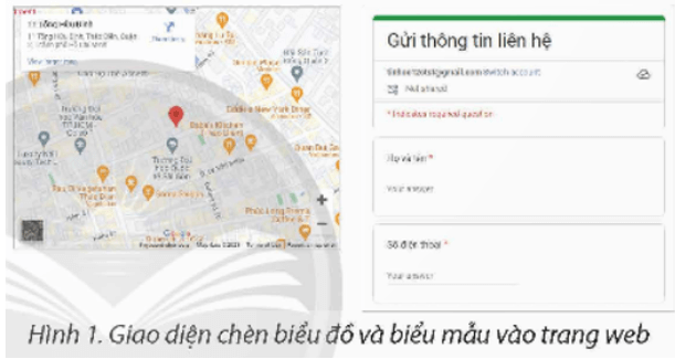 Khởi động trang 90 Tin học 12: Theo em, công dụng của bản đồ và biểu mẫu trên trang web là gì? Tương tự như cách chèn các công cụ đã học ở bài trước, em hãy nêu cách chèn bản đồ (map) vào trang web.