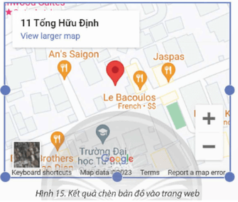 Hoạt động trang 91 Tin học 12: Có bao nhiêu tuỳ chọn chèn bản đồ vào trang web? Em hãy kể tên các tuỳ chọn đó.