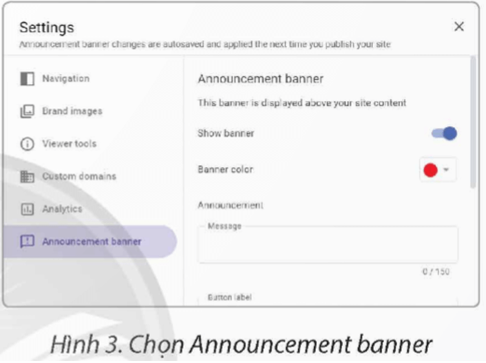 - Show banner (Hiển thị phần thông báo): Nội dung sẽ xuất hiện ở đầu trang web.