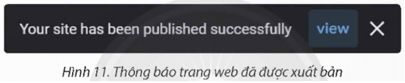 Xuất hiện thông báo phía dưới màn hình, chọn view để xem trang web đã được xuất bản (Hình 11). Do đó, em có thể truy cập vào trang web mới vơi địa chỉ https”//sites.google.com/view/traicayviet.