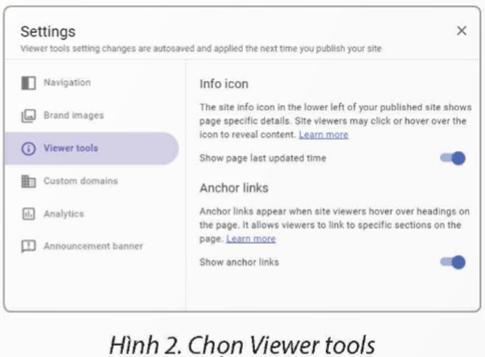 Thiết lập một số tuỳ chỉnh trước khi xuất bản: Hiển thị thông tin lần cập nhật mới nhất của trang, hiển thị đường liên kết neo hoặc có thể thiết lập phần thông báo cho trang web.