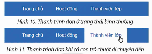 Yêu cầu: Trong trang web kỉ yếu lớp, tạo thanh trình đơn ngang nằm ở đầu trang chủ của trang index.html như Hình 10 và Hình 11.