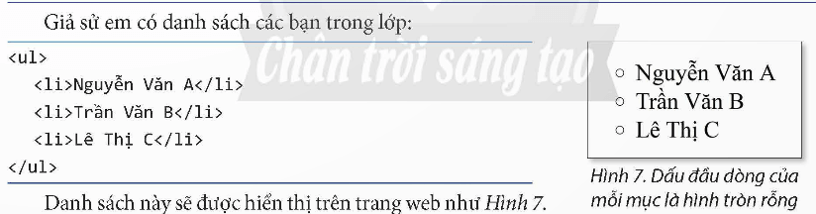 Hoạt động trang 159 Tin học 12: Em hãy thay đổi lần lượt các giá trị của thuộc tính list-style-position, đồng thời thay đổi độ rộng của trang web để xem kết quả hiển thị.