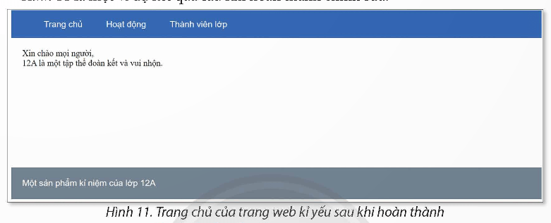 Vùng 2: Dùng để hiển thị nội dung, cụ thể trang chủ có nội dung giới thiệu về lớp.