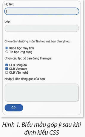 Thực hành trang 172 Tin học 12: Nhiệm vụ. Định kiểu CSS cho biểu mẫu góp ý