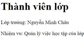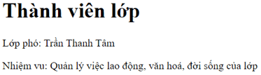 - Tạo trang web thanhvienlop.html có thành viên lớp như sau: