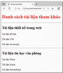 <li>Tài liệu HTML</li> <li>Tài liệu CSS</li>