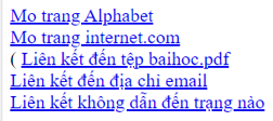 Hoạt động 2 trang 77 Tin học 12: Nếu thẻ <a> không được khai báo thuộc tính href thì người dùng có thể nháy chuột vào nội dung bên trong thẻ <a> này không? Tại sao?