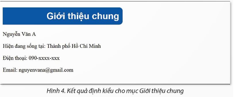 Yêu cầu: Sử dụng vùng chọn để định kiểu cho các đề mục ghi của tệp portfolio.html (Hình 4) theo các yêu cầu sau: