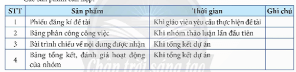 + Về hình thức: bài trình chiếu từ 10 – 15 trang, các phiếu đăng kí, bảng phân công công việc và bảng tổng kết, đánh giá hoạt động của nhóm trên tệp .pdf.