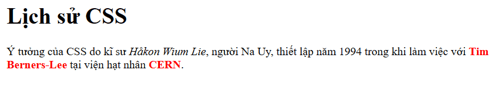 Câu hỏi 1 trang 85 Tin học 12: Sửa lại CSS trong ví dụ trên, định dạng màu nền và khung viền cho cụm từ Tim Berners-Lee với màu khác biệt.