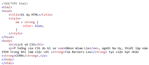 Kết quả là các phần tử <strong> ngay sau phần tử <em> sẽ có màu chữ xanh.