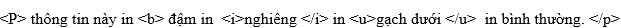 | in đậm in nghiêng in gạch dưới in bình thường.
