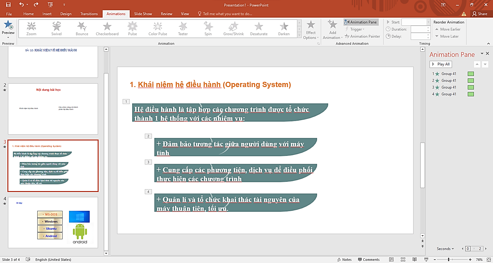 - Tạo hiệu ứng cho các đối tượng trên trang trình chiếu:
