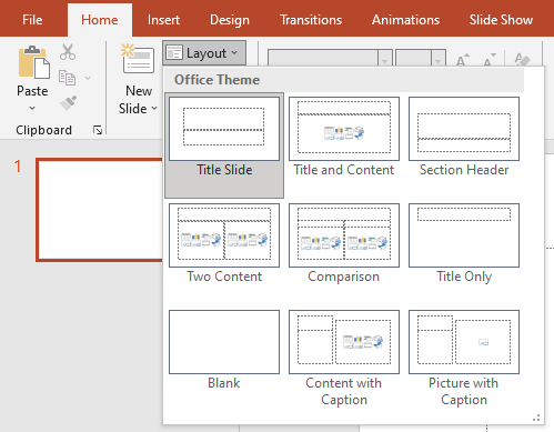 - Chọn mẫu bố cục muốn thay đổi thành.