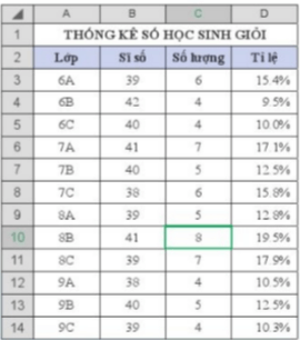 Khởi động trang 22 Tin học 8: Em có một bảng thống kê số lượng học sinh giỏi của các lớp trong trường. Nếu chỉ muốn hiển thị các lớp có tỉ lệ số học sinh giỏi lớn hơn 15% thì em phải làm thế nào?