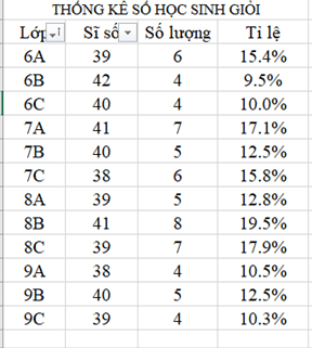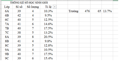 Hình 1. Bảng thống kê số lượng học sinh giỏi