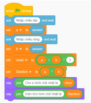 Thêm biến diện tích: Make a variable>Nhập "Dientich">OK.